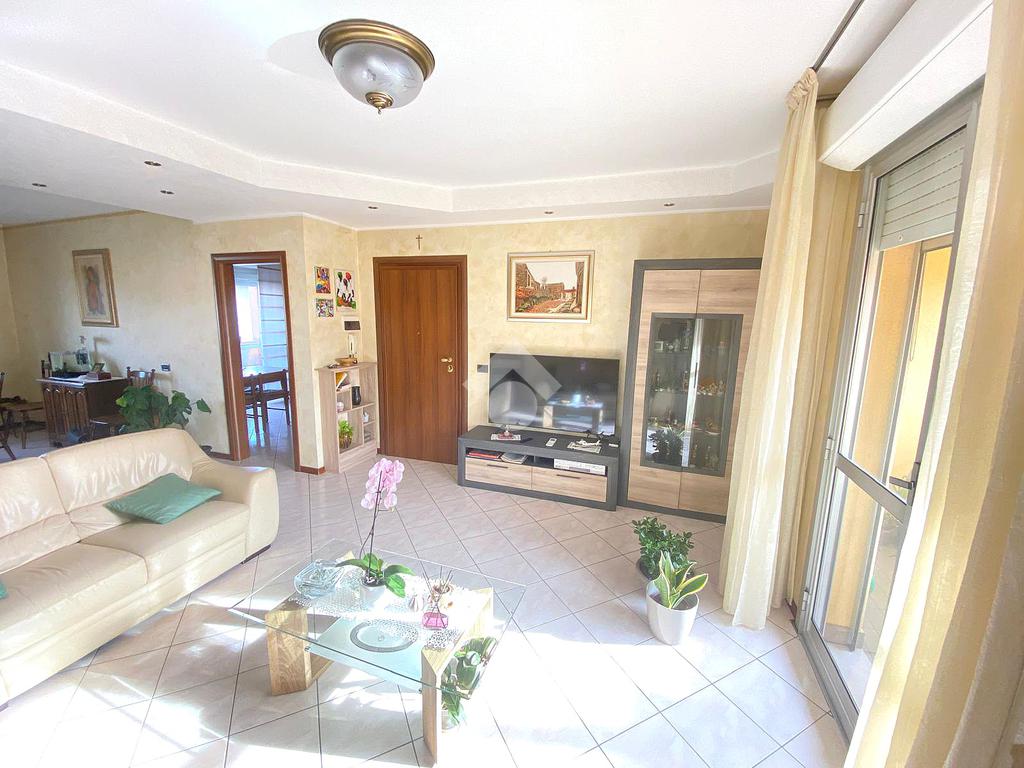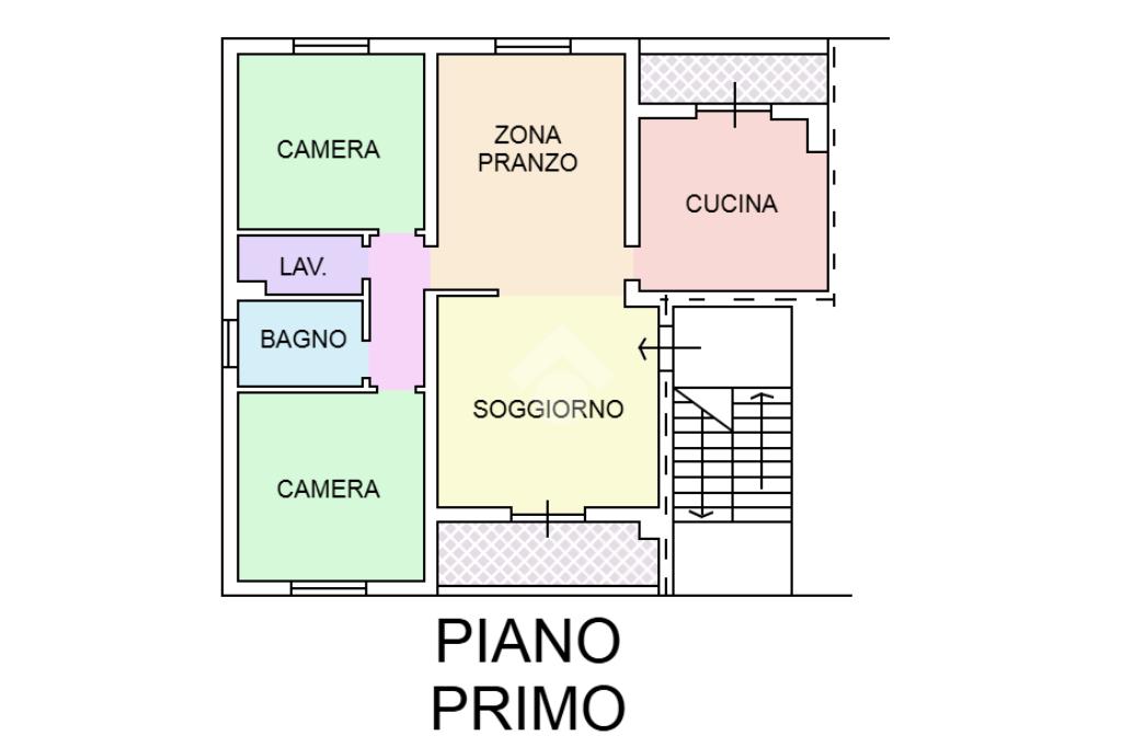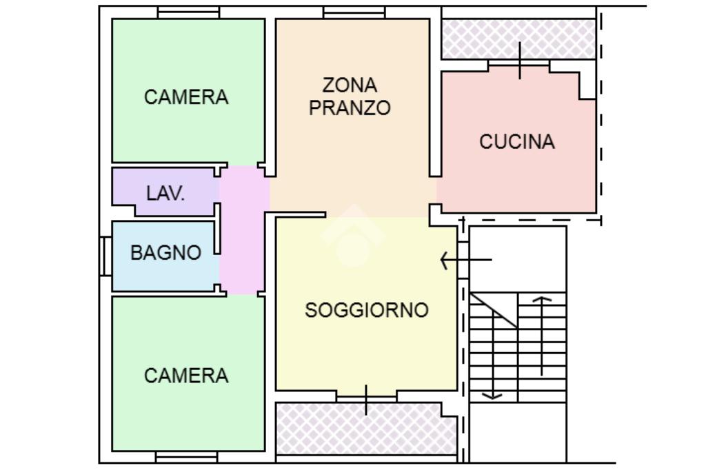 Ampio appartamento di 104 di quattro locali, con spazi comodi e funzionali, al primo piano, con tripla esposizione Est - Sud - Nord.
