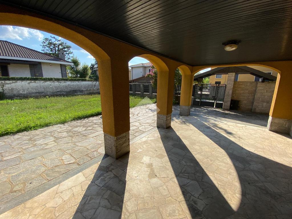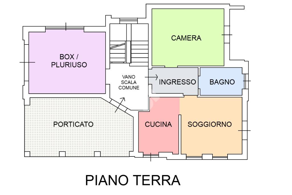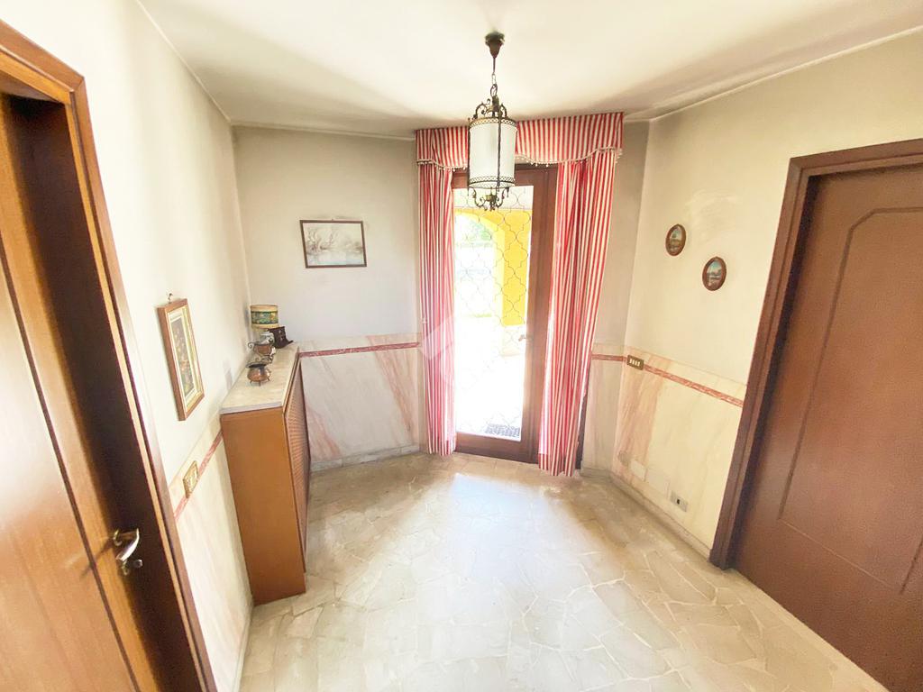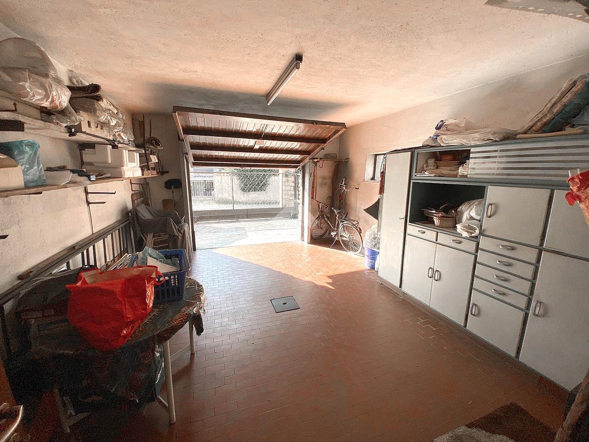 Il porticato al piano terra di 25 mq circa, esposto a Sud verso il giardino, utile anche da utilizzare per piacevoli momenti di relax della famiglia e con amici, si accede all’abitazione dotata di un vano scala di collegamento ai due appartamenti e porta di collegamento ad un ampio locale ad uso box / ripostiglio di 27 mq.