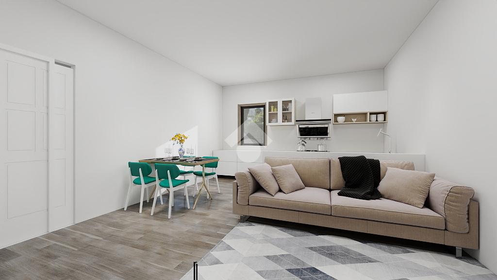 Al piano terra di 52 mq. circa, sono presenti due locali, di cui uno attrezzato a cucina dotato di due accessi, uno indipendente dal cortile interno e uno dal vano scala comune.