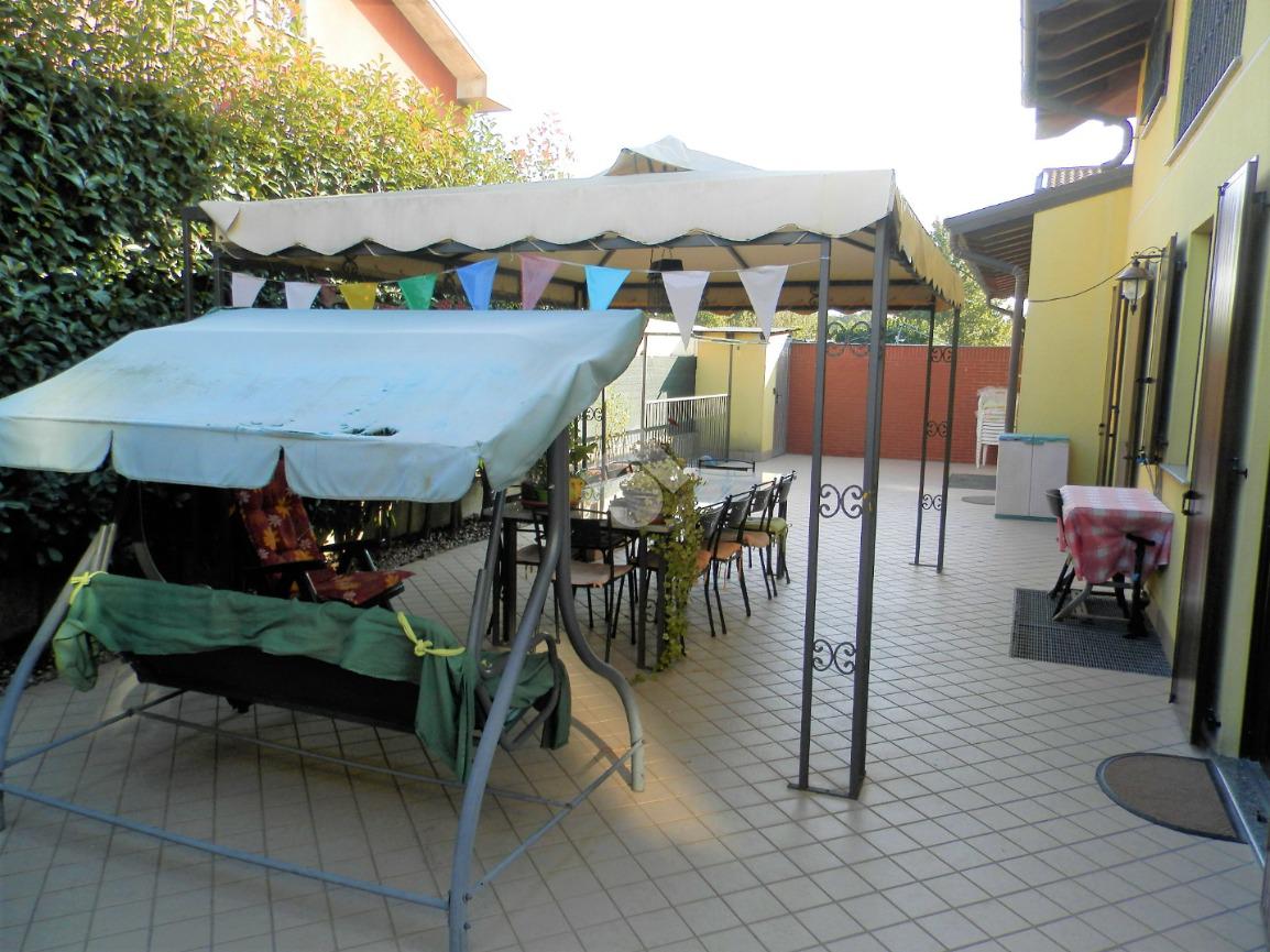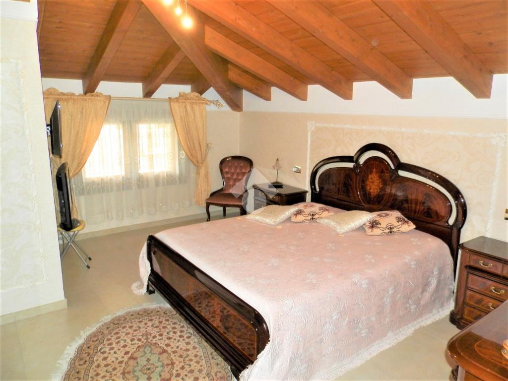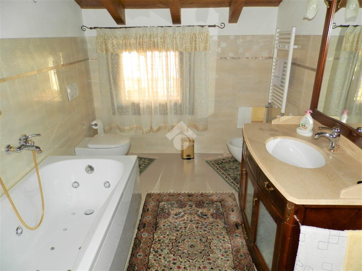 La villa sorge in zona tranquilla e residenziale, in posizione comoda per raggiungere anche spazi verdi dedicati ai bambini. La sua generosa metratura la rende adatta alle esigenze di una famiglia proponendo ambienti spaziosi e confortevoli. Rifinita con materiali extracapitolato e dallo stile elegante e raffinato, si presenta in ottime condizioni grazie anche alla cura dei suoi proprietari. Arricchita dal giardino curato su tre lati dell'abitazione, è valorizzata anche dalla presenza di un portico e di un'area pavimentata sul retro dell'abitazione dotata di gazebo che consente di pranzare all'aperto. I locali principali trovano sistemazione su due livelli; l'ingresso accompagna al soggiorno, dal taglio regolare in grado di ospitare anche la zona pranzo. Adiacente al living troviamo l'ampia cucina abitabile. Il disimpegno indirizza alla camera matrimoniale e al bagno dotato di box doccia. Il piano si completa di un pratico ripostiglio interno. Il piano mansardato vede la presenza di quattro ampi locali rifiniti con travi a vista e di doppi servizi di cui uno con vasca idromassaggio. Il balcone a servizio di uno dei locali affaccia sul retro della villetta. Il piano seminterrato, raggiungibile anche dall'esterno, presenta un'ampia lavanderia, il locale caldaia, un locale ad uso palestra e un ampio locale per momenti in compagnia caratterizzato dalla presenza di un forno.